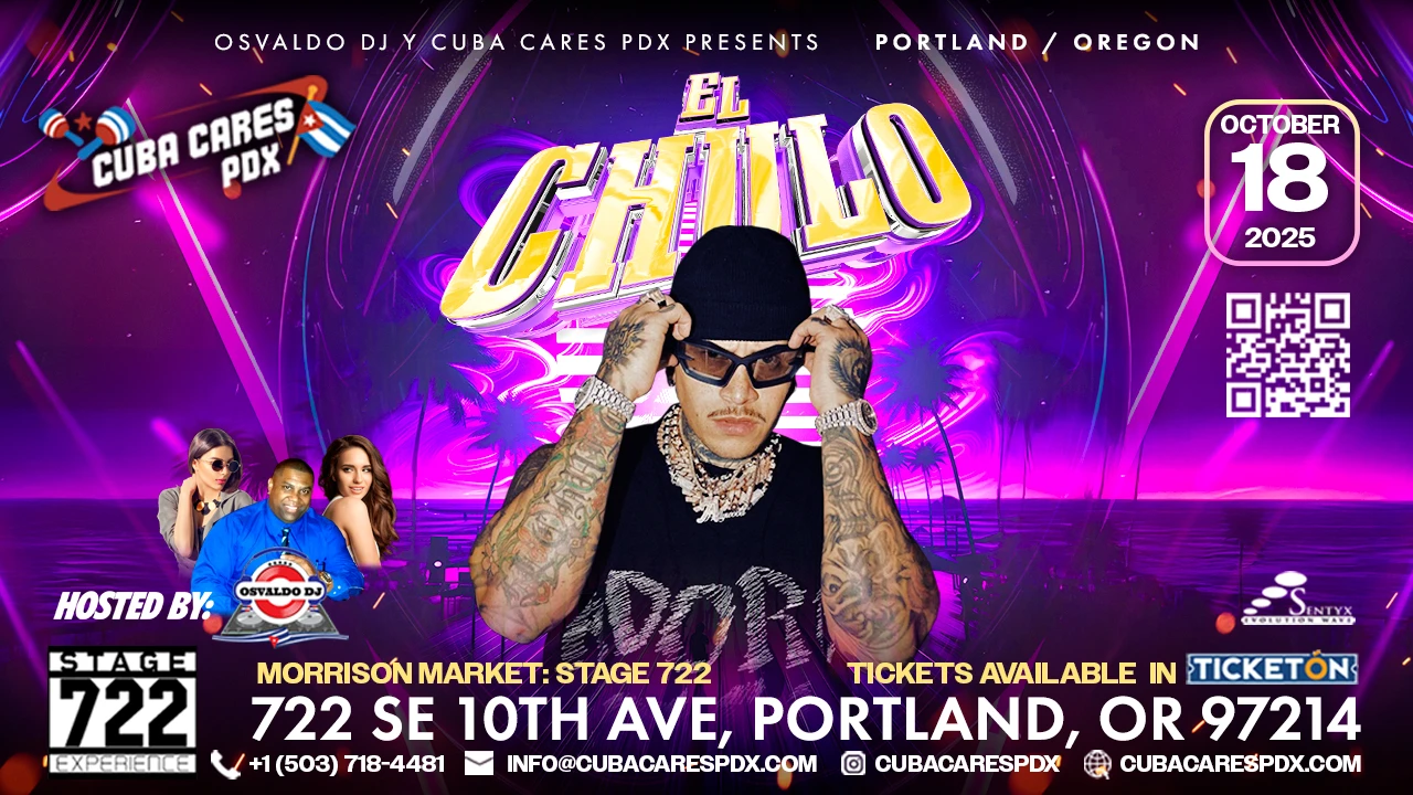 October 18 @ 10:00 pm – October 19 @ 2:00 am El Chulo / Portland Oregon / Stage 722 Stage 722 722 SE 10th Ave, Portland, OR, United States